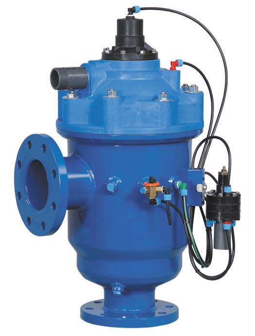 A controller monitors the pressure in the filter and opens a flush valve when it senses a differential pressure threshold